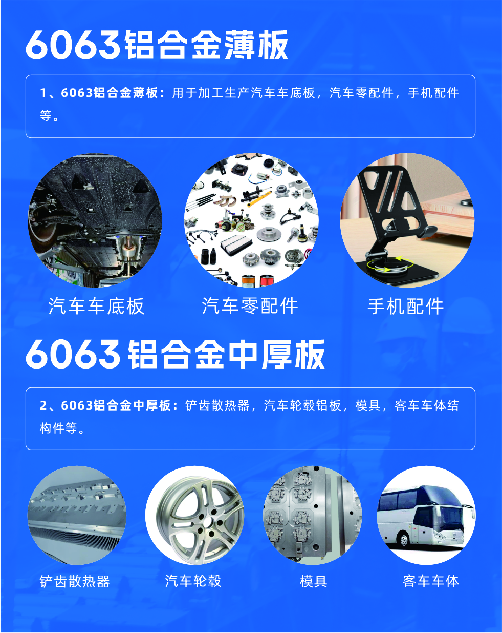 6063鋁板是一種綜合性能很強(qiáng)的鋁合金材料,屬于低合金化的Al-Mg-Si系高塑性合金,具有諸多可貴特點,廣泛用于客車車體結(jié)構(gòu)件、汽車發(fā)動機(jī)零件、汽車輪轂、手機(jī)外殼、精密模具等領(lǐng)域。